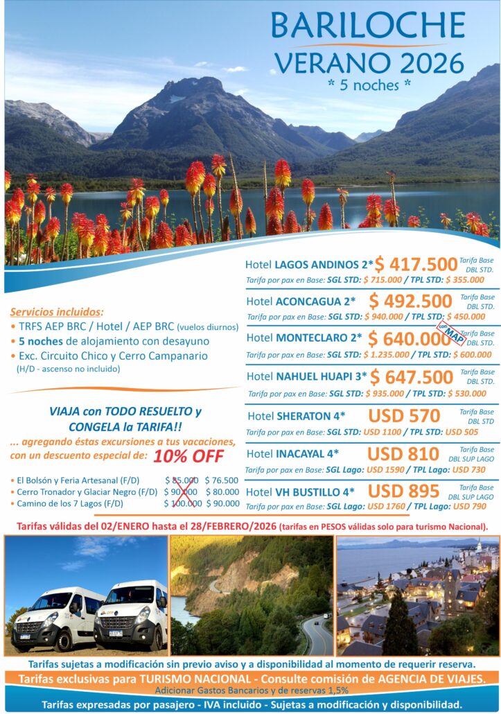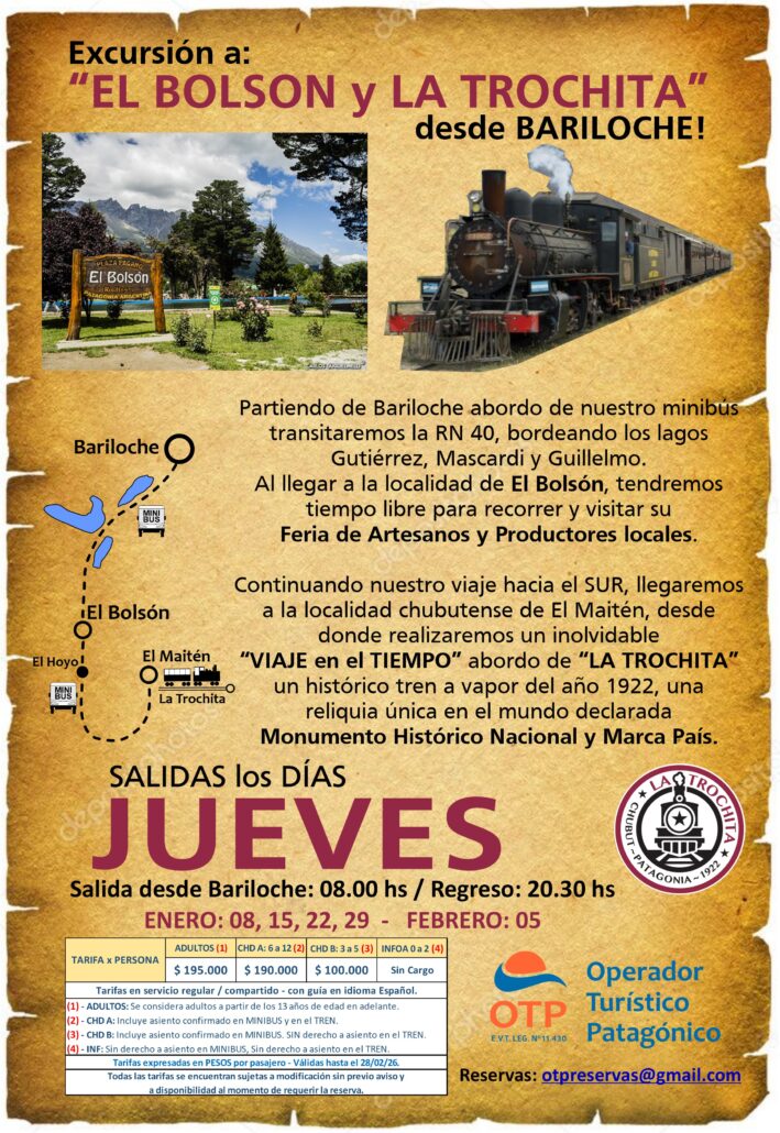 (Agencias de Viajes consultar condiciones de comercialización a: reservas@otp-patagonia.tur.ar)